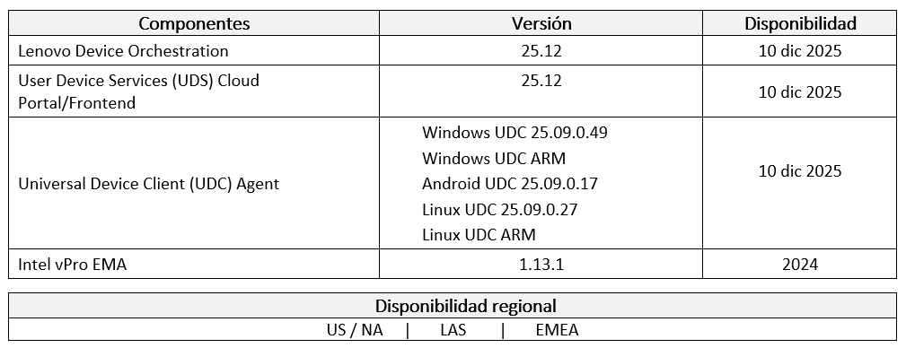 Notas de la versión v25.12 de Lenovo Device Orchestration