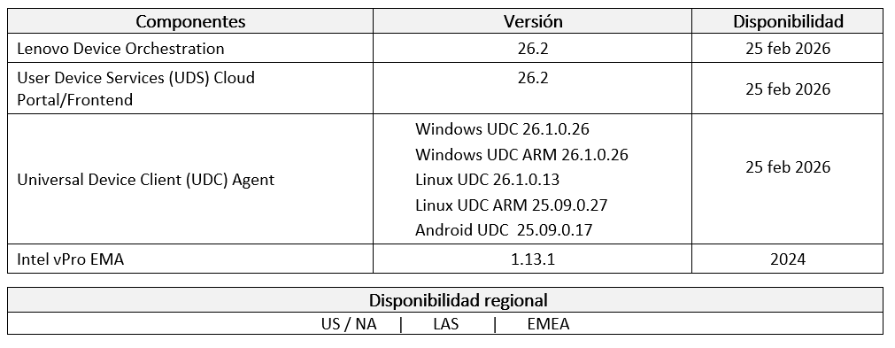 Notas de la versión v26.2 de Lenovo Device Orchestration