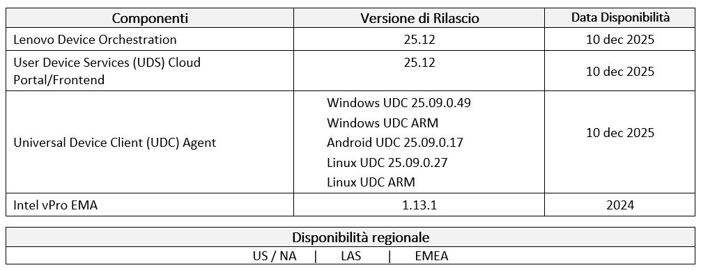 Noti di Rilascio Lenovo Device Orchestration v.25.12