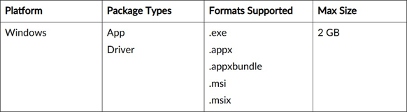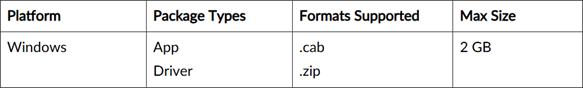 - ドロップダウンから、対応する「パッケージ・タイプ」を選択します。Windows では、「アプリ」と「ドライバー」の両方のパッケージ・タイプがサポートされています。