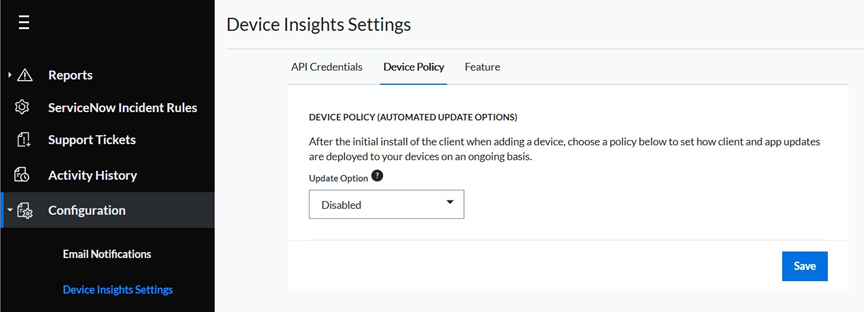 デバイス・ポリシーを使用すると、LDO ユーザーは、新しいバージョンのリリース時にデバイスの UDC エージェント (Universal Device Client) が自身を更新できるタイミングを構成できます。