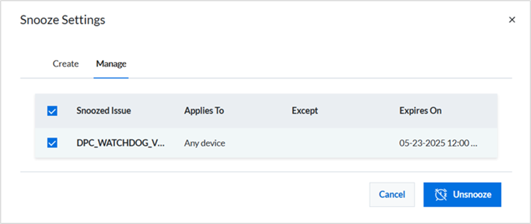 - 「スヌーズ解除」をクリックします。すべてのデバイスのすべての問題タイプがスヌーズ解除されます。