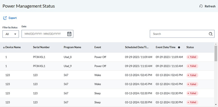 この機能は、電源管理プログラムのステータスを追跡して、成功と失敗を簡単に追跡します。レポートは .csv ファイルにエクスポートできます。