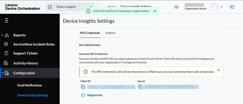 - 既存の API 資格情報を変更する場合は、新しい資格情報を生成する必要があります。