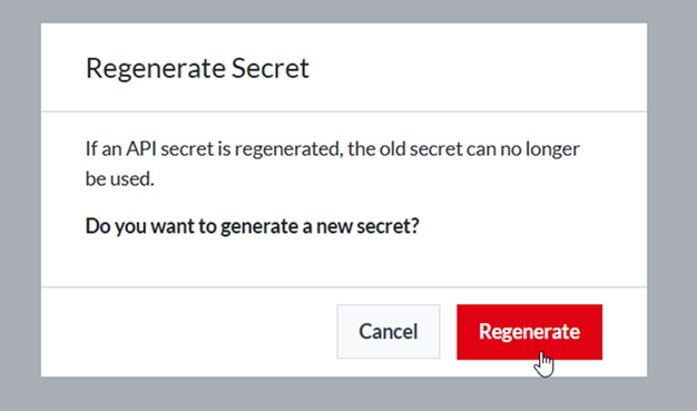 「シークレットを再生成」ウィンドウで、「再生成」をクリックします。
