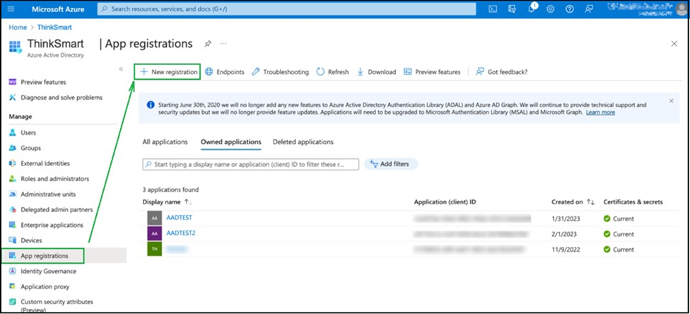 - 新しいアプリケーションを作成した後、組織の認証タイプを「Microsoft Entra ID」に更新するために必要なデータを収集します。