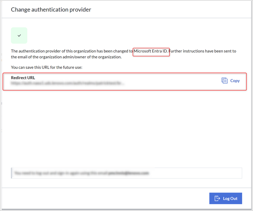 - 下図の LDO ダイアログボックスから、または上記の手順を完了した直後に届くメールから、リダイレクト URL をコピーします。