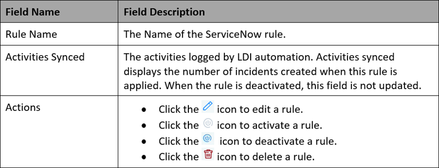 インシデント・ルールを作成する前に、LDO で ServiceNow を構成する必要があります。詳しくは、「LDO への ServiceNow の統合」を参照してください。