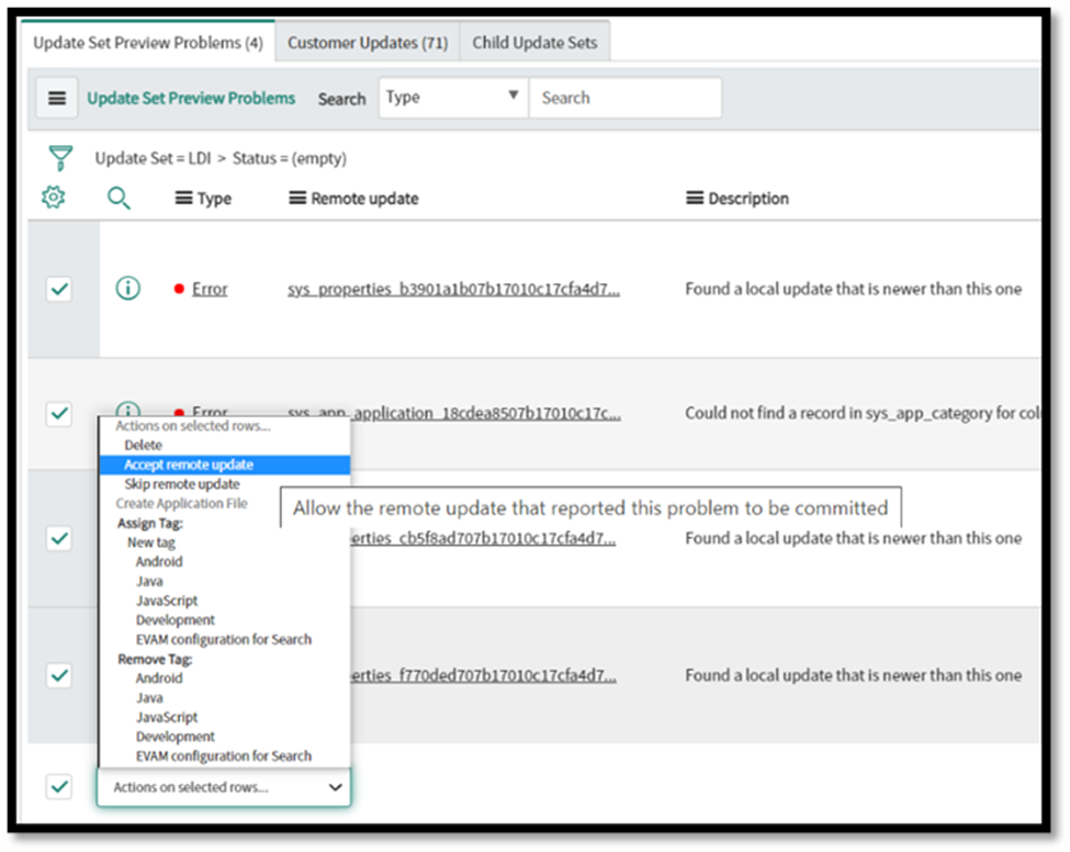 응용 프로그램 원격 업데이트 집합은 ServiceNow 인스턴스로 가져올 수 있는 XML 파일입니다. 파일에는 Lenovo에서 개발한 구성 및 스크립트가 포함되어 있습니다.