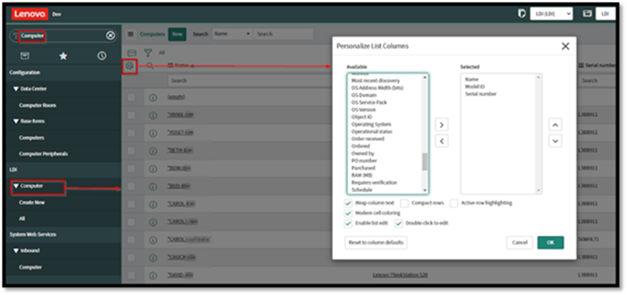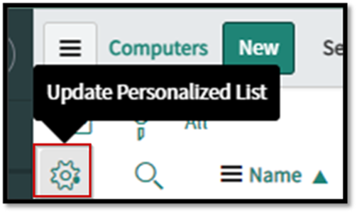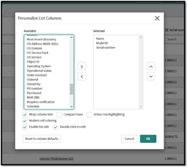 - 설정 아이콘을 클릭하십시오. 목록 열 개인 설정 창이 나타납니다.