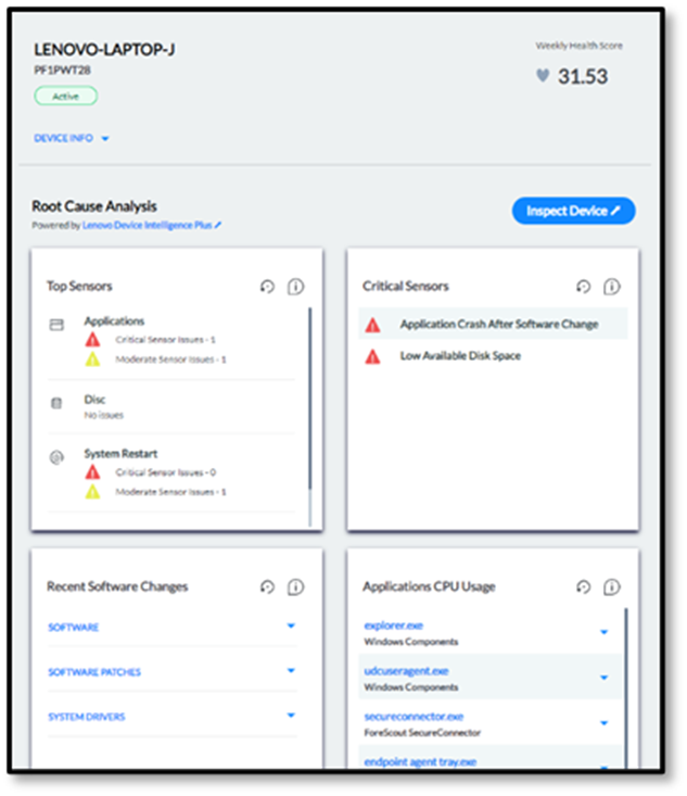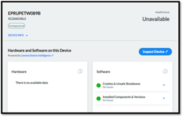 - 장치의 일련 번호가 ServiceNow에 있는 해당 자산의 일련 번호와 일치합니다.