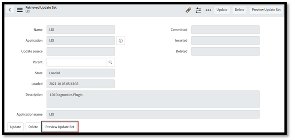 - 참고: LDI 업데이트 집합을 업데이트하거나, 삭제하거나, 미리 볼 수 있습니다.