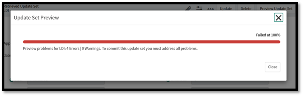 오류를 해결하려면 탭에서 모든 오류를 선택하고 집합 미리 보기 문제 업데이트를 클릭하십시오.