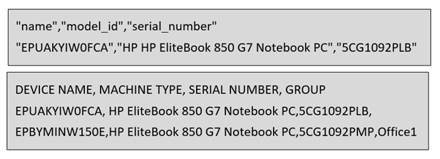 - 장치 이름을 자동으로 업그레이드하려면 시스템 유형이 model_id이어야 하고, 일련 번호가 serial_number와 일치해야 합니다.