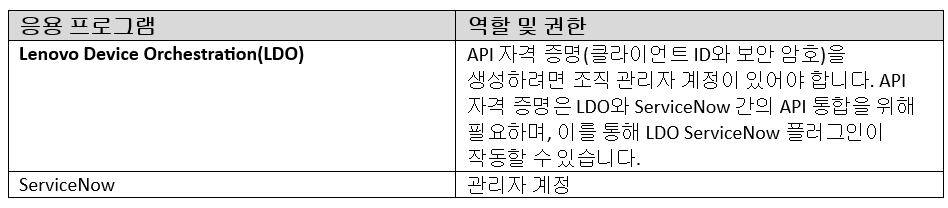- ServiceNow 응용 프로그램에 관리 계정이 필수로 있어야 합니다.