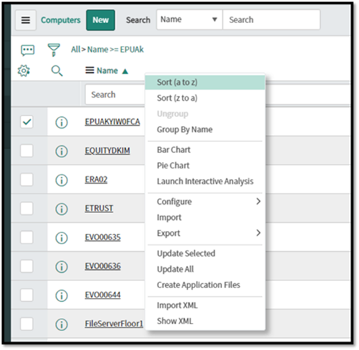 탐색 메뉴에서 컴퓨터를 클릭하십시오. 창에 자산 목록이 표시됩니다.