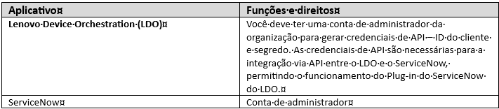 Verifique se as contas de usuário usadas para o LDO e o ServiceNow têm as funções e permissões necessárias para acessar, sincronizar e gerenciar dispositivos/ativos nas duas plataformas.