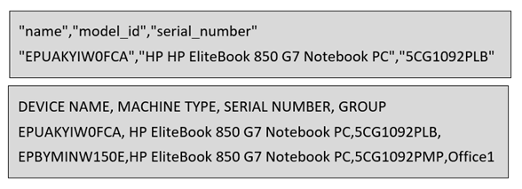 - Para atualizar DEVICE NAME automaticamente, MACHINE TYPE deve ser model_id e SERIAL NUMBER deve ser igual a serial_number.