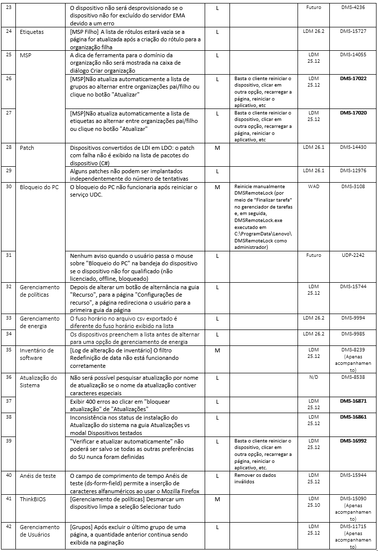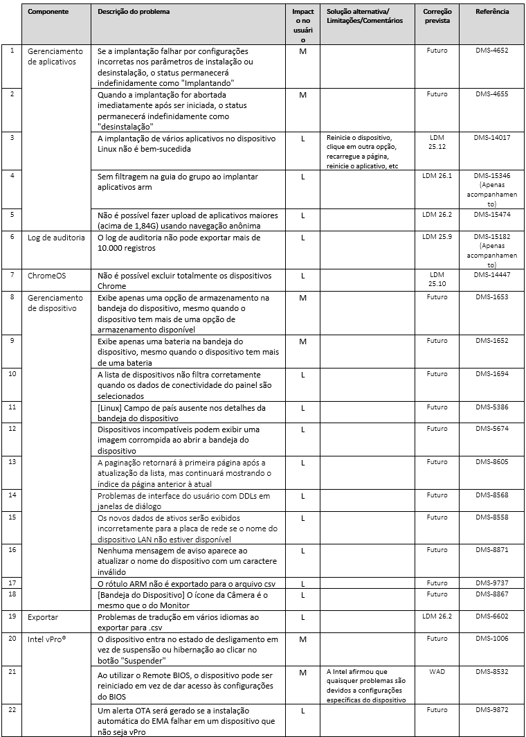 - A coluna na guia "Atualizações agendadas" agora se refere a "Descrição do atualização do sistema" em vez de "Nome do pacote" para consistência